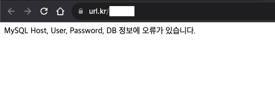 - 오류 내용 : 단축 링크 접속 시 "MySQL Host, User, Password, DB 정보에 오류가 있습니다." 메시지 발생