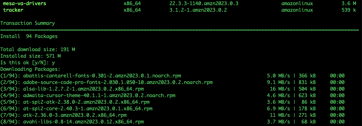 서버 터미널에서 아래 명령어를 입력하면 바로 yum을 통해 설치가 진행된다.